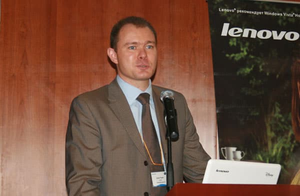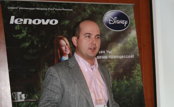 Первый докладчиком был Денис Решин. Он рассказал историю Lenovo, сделав акцент на стремлении компании повысить узнаваемость бренда за пределами Китая. И если рассматривать выпуск IdeaPad Y330 Disney Princess и сопутствующую ему рекламную кампанию как часть стратегии по повышению узнаваемости бренда Lenovo, то нельзя не отметить правильность такого шага: Disney — один из самых узнаваемых брендов в мире. И выпуск ноутбука с узнаваемыми чертами этого бренда автоматически заставляет людей ассоциировать и Lenovo с Disney («а, это та компания, которая выпустила ноутбук по мотивам мультфильмов Disney!»).