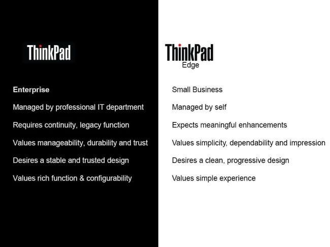 Представленные модели формально относятся к корпоративной линейке ThinkPad, но при этом они ориентированы не на корпоративных пользователей, а на малый и средний бизнес. Как известно, требования к технике в этом сегменте отличаются от корпоративных, в частности, покупатели малого и среднего бизнеса значительно больше внимания обращают на цену продукта, в отличие от корпоративных пользователей, для которых решающим является параметр «совокупной стоимости владения».