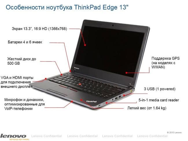 Однако оставим маркетинг, и посмотрим на технические особенности ноутбуков Lenovo Edge. Обратите внимание, речь идет о 13-дюймовой модели, потом в линейке должны появиться модели с диагональю экрана 14 и 15 дюймов.