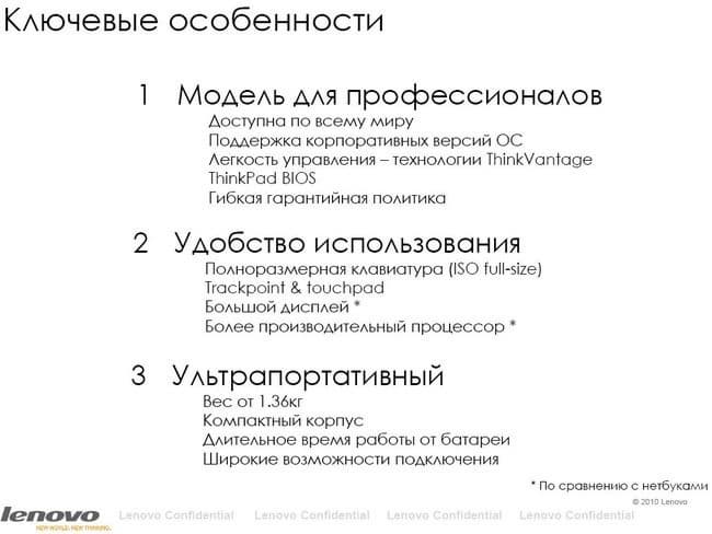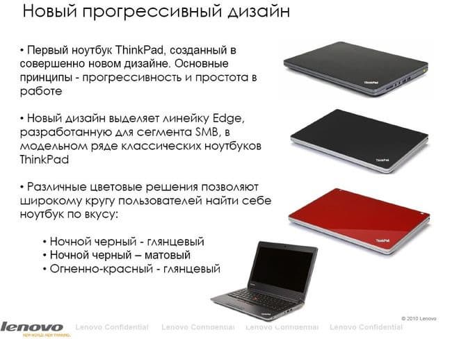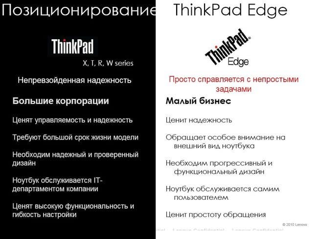 Чтобы не повторяться, я просто приведу слайд, на котором уже изложены основные моменты в позиционировании линейки ThinkPad Edge.