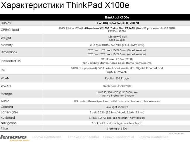 Платформа AMD в ноутбуках ThinkPad Edge и X100e