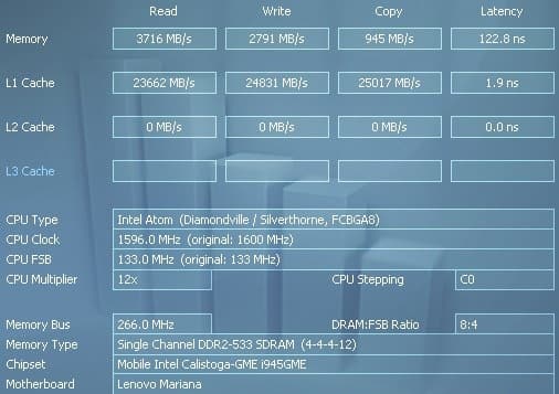 Для сравнения, мы взяли результаты Eee PC. Как видим, производительность процессора такая же (хотя Lenovo везде чуть-чуть быстрее, проиграл только в графике).