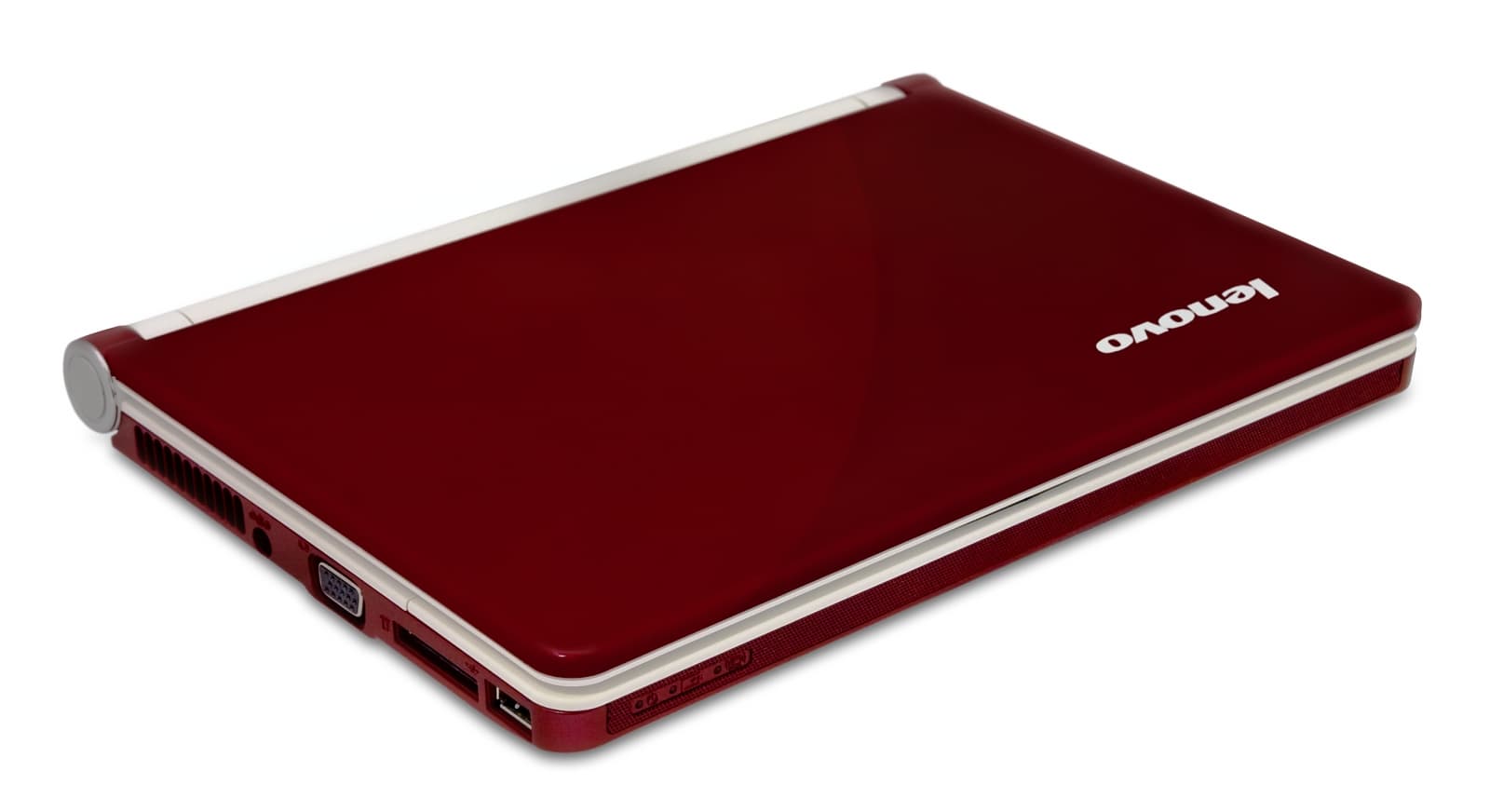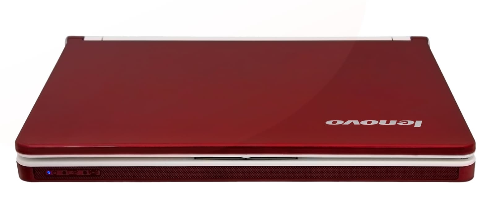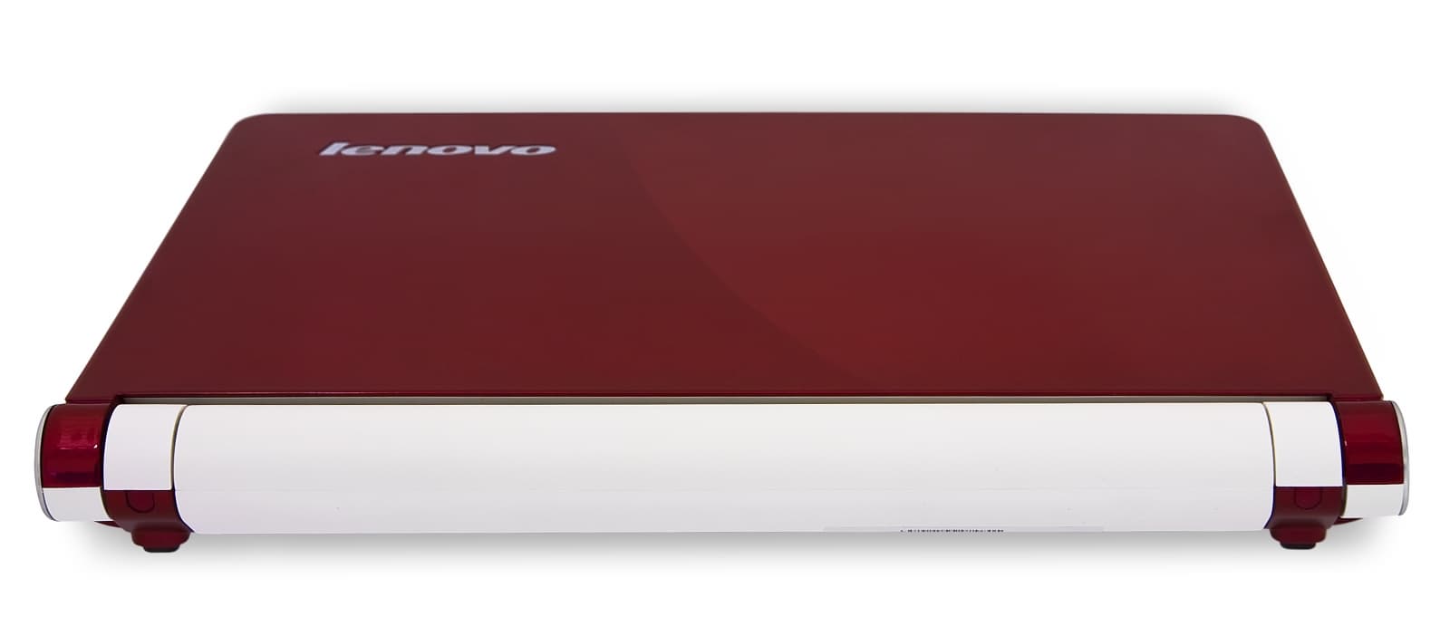 Основной «фишкой» является расцветка: Lenovo предлагает на выбор большое количество цветов и их сочетаний: белый, черный, розовый, красный и т.д. У нас на тестировании был нетбук с комбинированным красно-белым корпусом. Выглядит он очень стильно и свежо, правда, лакированная крышка показалась непрактичной, так как она быстро покрывается отпечатками, а в дальнейшем — царапинами.