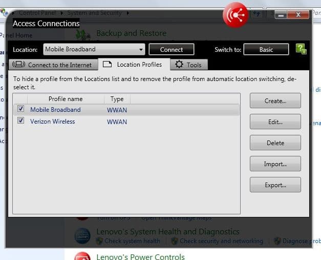 Вторая интересная программа — Access Connections 5. Благодаря этой утилите можно легко формировать профили для беспроводных подключений и переключаться между ними. Правда, в ее использовани на Х100е есть одна особенность. По FN+F5 вызывается не стандартный удобный менеджер беспроводных соединений, а другая утилита, которая всего лишь позволяет включать или выключать интерфейсы. Кроме того, ее не хватает — приходится еще включать их дополнительно через интерфейс Windows. В то же время, Access Connections в Х100е установлен, но не вызывается по нажатию обычного для других моделей ThinkPad клавиатурного сочетания.