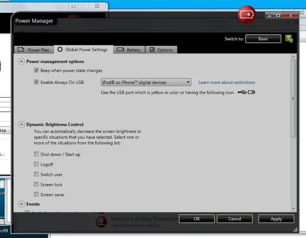 А также следить за состоянием батареи. В целом, утилита значительно более удобна, чем стандартный интерфейс Wnidows, и позволяет быстро и удобно настраивать различные профили энергопотребления и переключаться между ними.