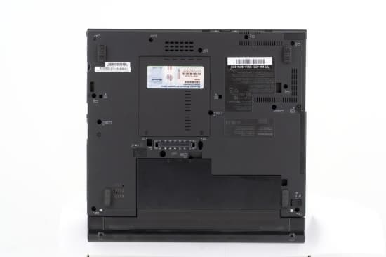 На дне ноутбука видно фигурный вырез для батареи в корпусе и разъем для док-станции.