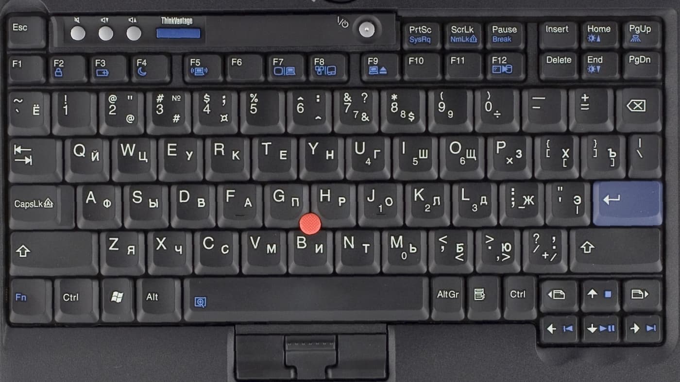 Трэкпоинт дополняется тремя клавишами — левая, правая кнопка мыши, и кнопка, включающая режим скроллинга для трэкпоинта. Кнопки традиционно для ноутбуков Lenovo/IBM отличаются мягким, но четким нажатием.