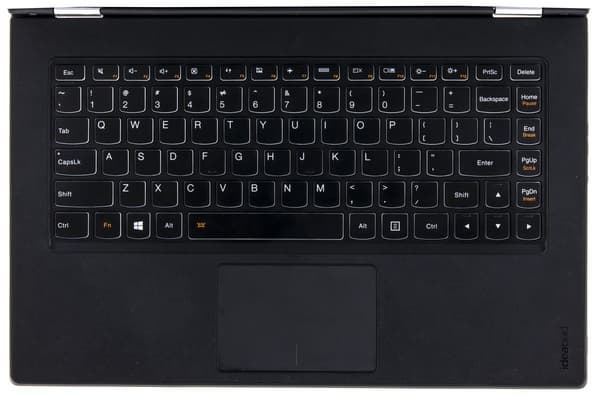 В целом, Yoga 2 Pro сохранила свой нейтральный внешний вид и смотрится неплохо. В открытом состоянии шарма добавляет текстура подставок под ладони и белая окантовка клавиш, но при этом очень неуместно смотрится толстенная рамка экрана. В закрытом — все тоже неплохо, в первую очередь благодаря металлическим панелям. Любителям яркого однозначно рекомендую поискать модификацию с оранжевым корпусом — не пожалеете.