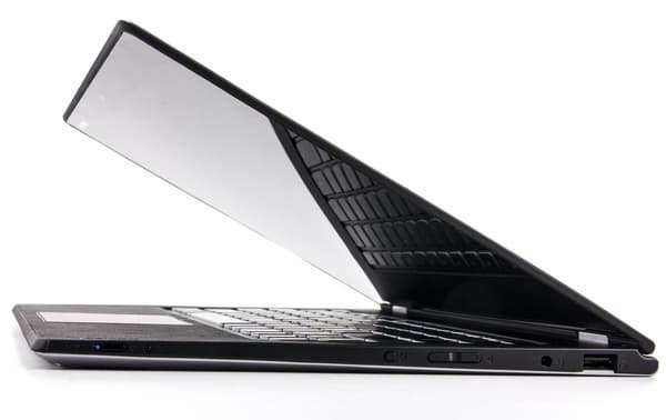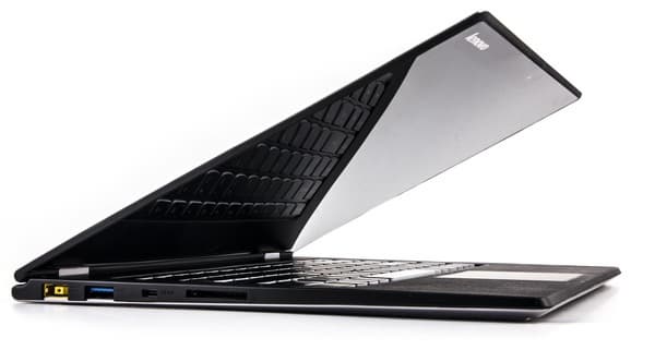 Заднюю грань использовать тоже не получится: там петли и выхлопные решетки вентиляции. Так что, как и практически на любых ультрабуках, у нас остаются только две боковые грани.
