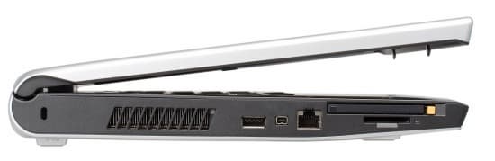 Слева расположены Expresscard и картовод под ним, сетевой разъем, разъем IEEE 1394 и один порт USB. Далее идет система вентиляции процессора и петля для замка кенсингтона. В порядке уточнения, я бы поменял местами сетевой разъем и порт USB, но это не критичное замечание.