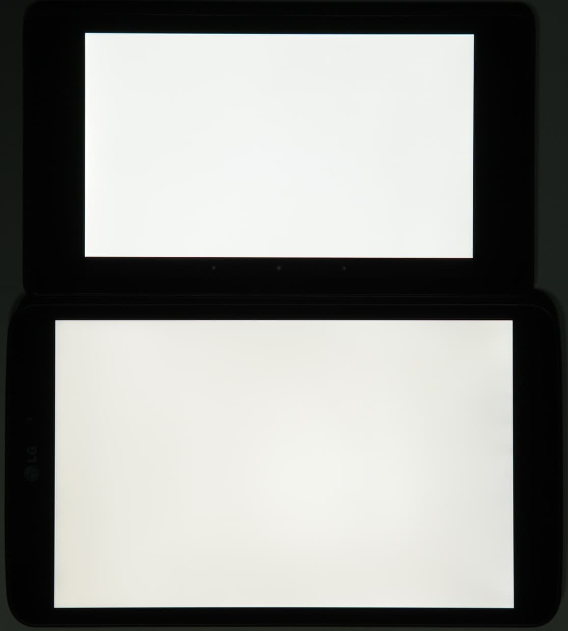 Яркость под углом у обоих планшетов заметно уменьшилась (примерно в четыре раза, исходя из разницы в выдержке), но в случае LG G Pad 8.3 падение яркости чуть больше (яркость по фотографиям 224 против 237 у Nexus 7). При этом цветовой тон изменился несильно.