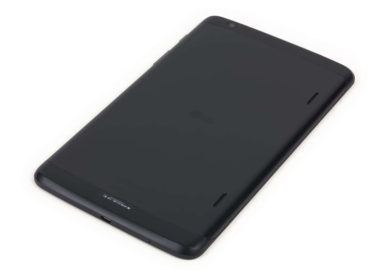Бо́льшую часть тыловой панели занимает алюминиевая пластина, окаймленная пластиком. Распространенное решение, придающее планшету «дороговизны» и разбавляющее вездесущий пластик. Особенность именно планшета LG заключается в том, что пластик окаймляет металлическую панель целиком — ребро и тыловые вставки образуют единую деталь, что положительным образом сказывается на общей надежности конструкции.
