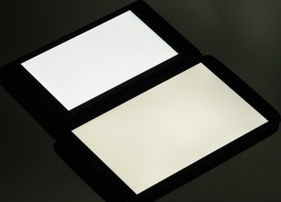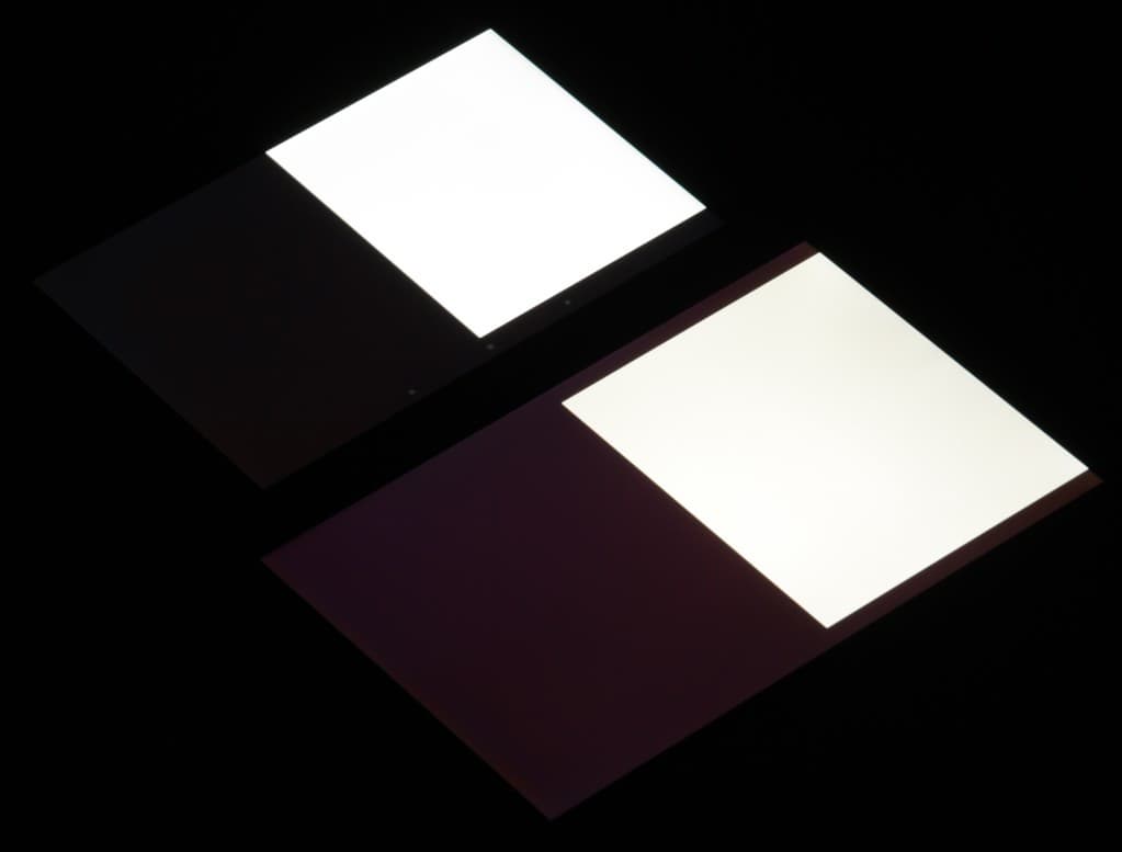 Для наглядности приведем фотографии, на которых в выключенных экранах обоих планшетов отражается белая поверхность: