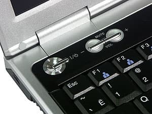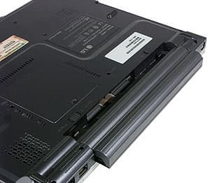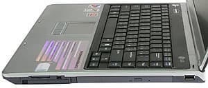 Теперь несколько слов о нагреве и шумности. В конструкции ноутбука применена теплоотводная трубка, призванная выравнивать температуру площадок под левой и правой руками. Весьма полезное решение, учитывая, что под площадкой для левой руки расположен жесткий диск один из существенных источников нагрева. Система функционирует эффективно даже при активном использовании жесткого диска, температура площадок на ощупь одинаковая. Нагреваются обе, но не так сильно. Нижняя крышка, как уже упоминалось, сделана из сплава магния и углеродистого волокна (CF/RTP), который, кроме прочих достоинств, обладает и хорошими теплоизолирующими свойствами. Так что работа с ноутбуком на коленях неудобств не вызовет. Система охлаждения работает очень тихо, по сути, слышен лишь звук, создаваемый воздушным потоком.