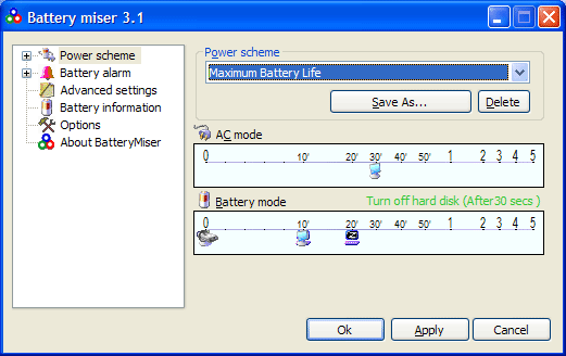 Вторая Battery Miser позволяет управлять режимами энергопотребления ноутбука, и призвана обеспечить рекордное время автономной работы.
