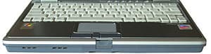 Да, клавиатура «почти как у больших». Почти потому что с природой не поспоришь. При маленьких размерах приходится чем-то жертвовать. В данном случае в жертву принесены клавиши Home/End/PgUp/PgDn и малоиспользуемые PrtSc/SysRq. Ну и пару клавиш пришлось сделать чуть поуже. В общем, для ноутбука такого размера клавиатура достаточно удобная, хотя блок клавиш управления курсором можно было бы сдвинуть чуть вниз, как это сейчас делается на многих моделях. Но тут, скорее всего, вмешался дизайн. Ходы клавиш также достаточные, однако клавиатура, как видно на фотографии, чувствительна к попаданию грязи.