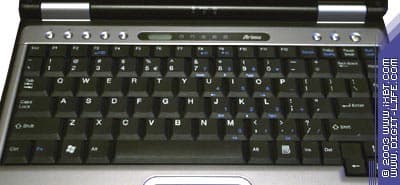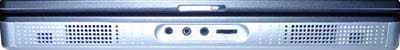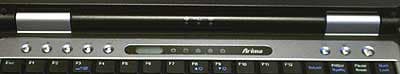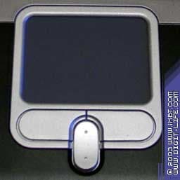 Основные индикаторы включения, зарядки, наличия почты вынесены на крышку и дублируются на ее внешней стороне. Очень удачное решение. Слева кнопки управления CD-проигрывателем, справа кнопка влключения и две кнопки быстрого вызова приложений (по умолчанию броузер и почтовый клиент). Между ними остальные индикаторы и жидкокристаллический экран проигрывателя. Глубинный смысл наличия плеера лично мне неясен. Я как-то могу понять наличие кнопок упраления воспроизведением оптических дисков, если они могут быть использованы при закрытой крышке. А здесь? Я бы лучше побольше кнопок быстрого вызова сделал. Впрочем, смотрятся кнопки хорошо :)