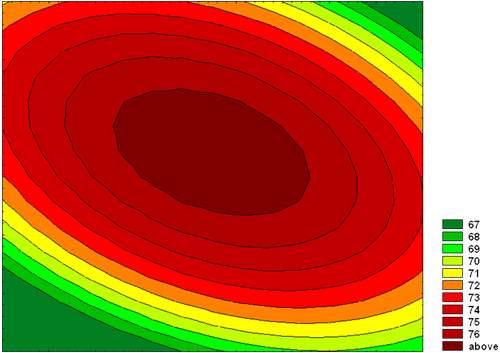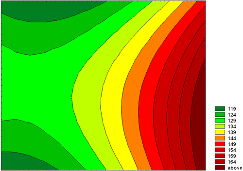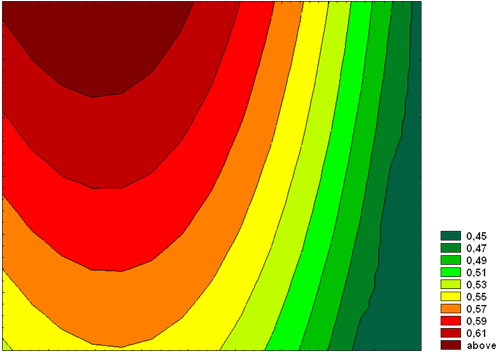 Поверхность, построенная по значениям контрастности. Изолинии через 5 единиц