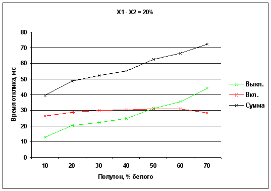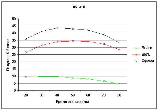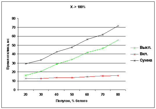 Времена отклика при переходе от полутона X до белого