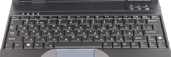 Раскладка клавиатуры мне понравилась. Если конкретно — понравилось расположение клавиш Ins и Del в нижнем ряду. У других моделей к ним зачастую приходится тянуться на самый верхний ряд клавиатуры. Тачпэд также нареканий не вызвал — то, что маловато места для рук, нельзя отнести к недостаткам — это следствие компактности ноутбука. Основные системные индикаторы (состояния ноутбука, зарядки батарей и наличия непрочитанной почты) вынесены на рамку экрана и дублируются на внешней стороне крышки. Индикатор активности устройств хранения информации и индикаторы lock'ов находятся над клавиатурой. Решения стандартные, но от этого не менее удобные. А вот расположение динамиков нестандартное. Они находятся... в ножках.