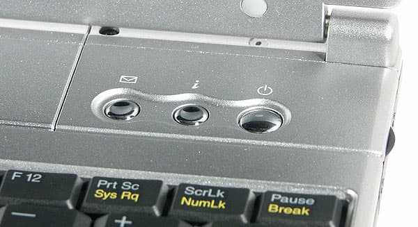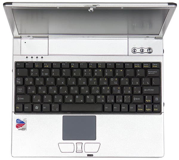 «Рабочая поверхность» ноутбука по сравнению с TravelBook TT поменяла цвет с черного на серебристый. На мой взгляд, это только добавило модели привлекательности. Раскладка клавиатуры не поменялась, да и зачем менять удачное решение. Мне, например, понравилось расположение клавиш Ins и Del в нижнем ряду. Зачастую у других моделей к ним приходится тянуться на самый верхний ряд клавиатуры. Тачпэд, как и у TT, нареканий не вызвал, скорее, порадовало наличие кнопок скроллинга. Все-таки, осуществлять скроллинг перемещением пальца по площадке, на мой взгляд, не так удобно. Основные системные индикаторы (состояния ноутбука, зарядки батарей и малополезный индикатор активности устройства беспроводной связи) вынесены на рамку экрана и дублируются на внешней стороне крышки. Индикатор активности устройств хранения информации и индикаторы lock'ов находятся над клавиатурой справа, кнопка включения питания и две кнопки быстрого вызова приложений — слева.