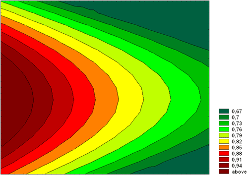 Поверхность, построенная по значениям яркости черного поля. Изолинии через 0,03 кд/м2