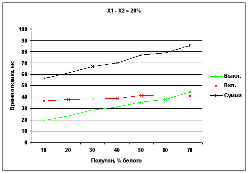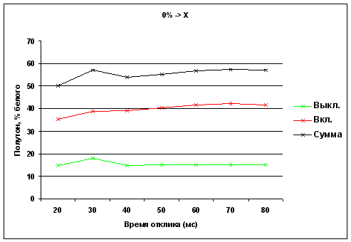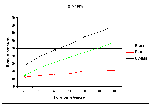 Времена отклика при переходе от полутона X до белого