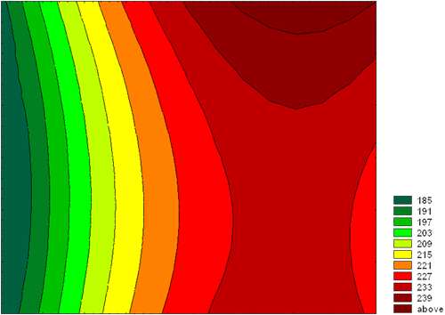Поверхность, построенная по значениям контрастности. Изолинии через 6 единиц