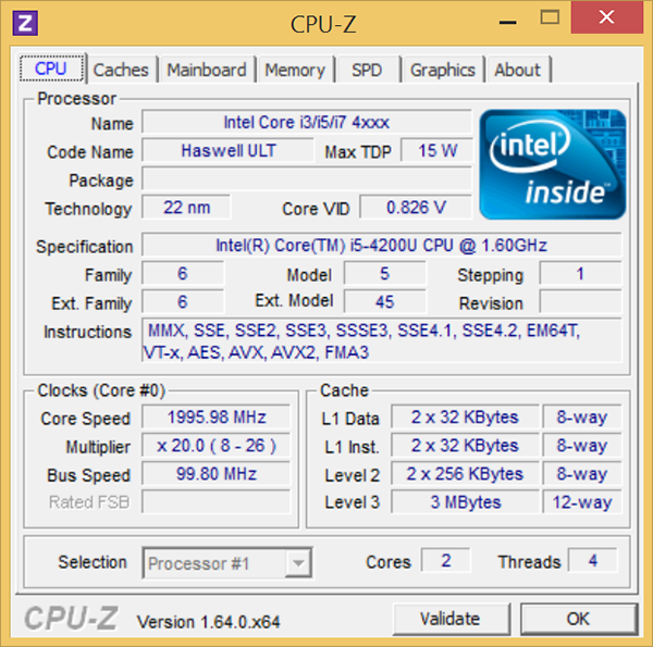 - Процессор Intel Core i5 4200U/4300U (Haswell)