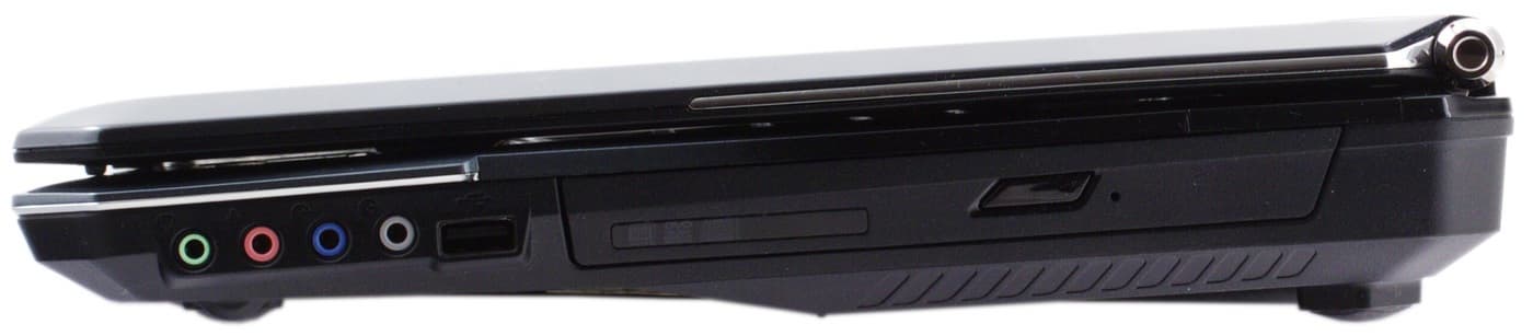 В общем, у GX660 просто отличный для домашнего (и тем более игрового) ноутбука набор портов. eSATA и HDMI сейчас много где есть, но это не умаляет их полезности. Есть четыре порта USB, из которых два поддерживают новый стандарт USB 3.0. Благодаря отдельным аудиоразъемам, ноутбук легко может работать с внешней акустикой.