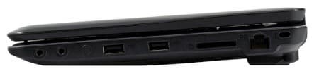 Все необходимое есть, порадовало наличие USB с обеих сторон корпуса, приятно, что не поскупились на SD/MMC-картовод. Порт HDMI уже давно стал визитной карточкой ноутбуков на платформе AMD, благо поддержка двух видеовыходов внедрена в чипсеты AMD уже несколько лет назад. И, кстати, в данном случае это вдвойне оправдано, поскольку ноутбук достаточно мощный для декодирования HD-видео.