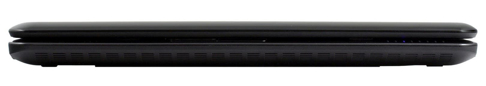 Цветовая гамма и материалы для покрытия корпуса подобраны весьма удачно: снаружи корпус черного цвета, крышка глянцевая, а панель, в которую встроена клавиатура сделана из темно-серого пластика, также глянцевого, но это не бросается в глаза, и в целом ноутбук выглядит солидно. Особой маркостью покрытие не страдает, так что ноутбук довольно практичен. Те, кто жалуется, что глянцевая рамка вокруг экрана создает отвлекающие блики, на этот раз останутся довольны, поскольку рамка матовая, хотя сам экран, конечно, повальной тенденции не избежал и имеет глянцевую поверхность.