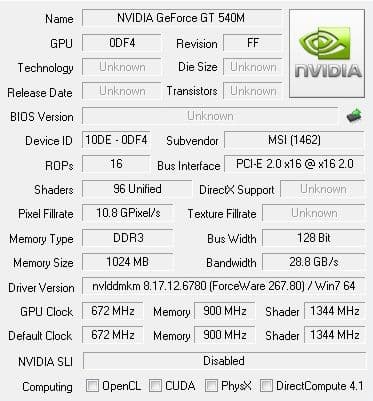 - Дискретная графическая карта NVIDIA GeForce GT540M (с DDR3 1 ГБ VRAM);