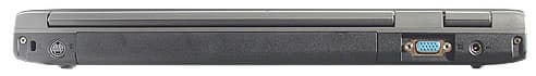 Большую часть заднего торца занимает аккумуляторная батарея. По бокам — слева разъем для замка Кенсингтона и ТВ-выход, справа — выход на внешний монитор и разъем для подключения источника питания.