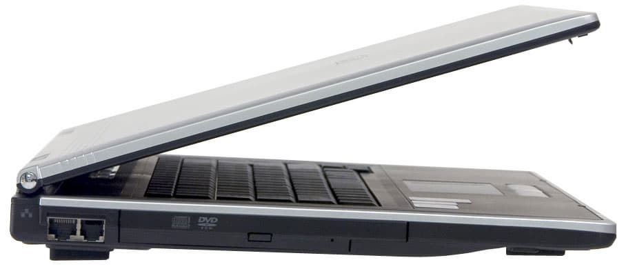 Основную часть левого бока занимает оптический привод. Сразу за ним, близко к задней части, располагаются разъемы сетевого и модемного интерфейсов. Здесь замечаний не возникло, все достаточно удобно.
