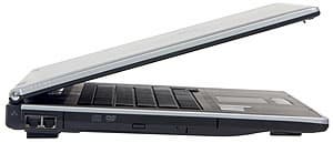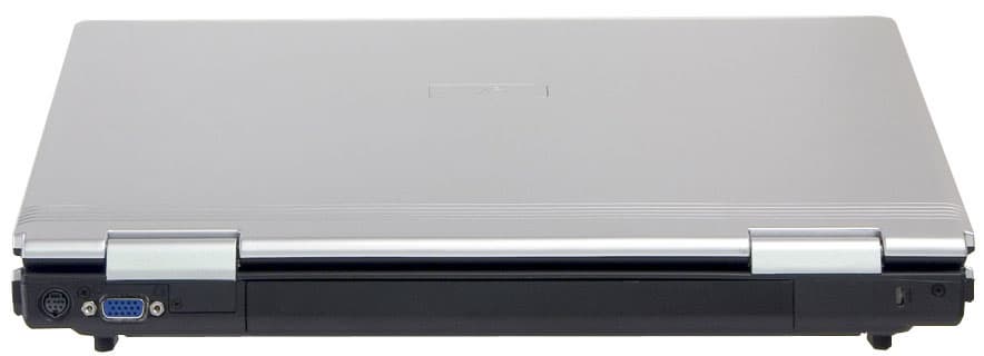 Львиную долю задней панели ноутбука занимает батарея, поэтому места для портов осталось немного. В связи с этим на задней стенке осталось только два разъема — VGA-вывод на внешний монитор и «мультимедиа-разъем», в который подключается кабель-разветвитель при наличии ТВ-тюнера. В целом, такое решение надо признать очень удачным, так как на заднюю стенку убраны наиболее тяжелые и толстые провода, которые иначе выступали бы сбоку от ноутбука.