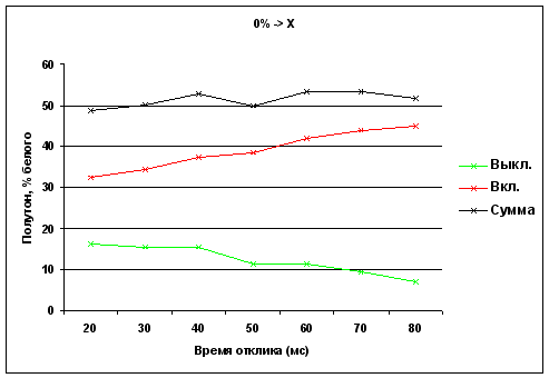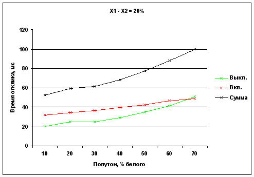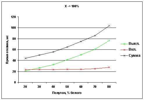 Времена отклика при переходе между полутонами в окрестности X, отстоящими от X на 10%