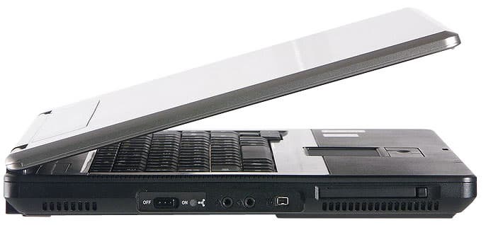 Слева механический выключатель беспроводной сети, аудиоразъемы, порт IEEE 1394 и слот PC Card.