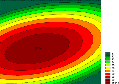 Поверхность, построенная по значениям контрастности. Изолинии через 4 единицы