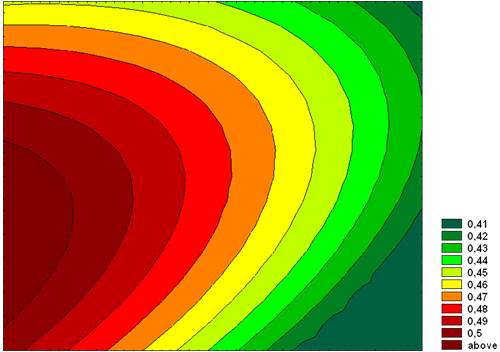 Поверхность, построенная по значениям яркости черного поля. Изолинии через 0,1 кд/м2
