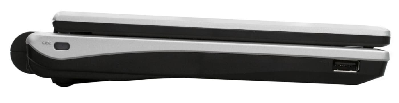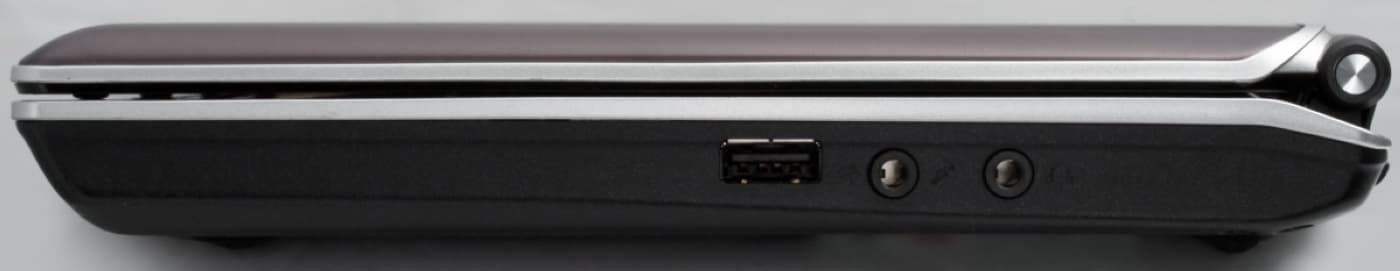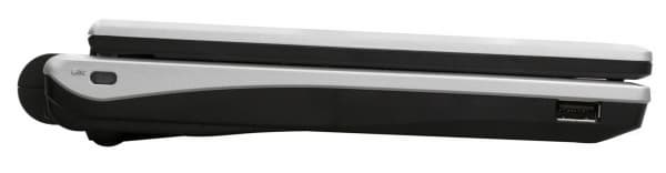 У ASUS и MSI передние грани чистые, а у Toshiba NB100 на переднюю грань зачем-то вынесены аудиоразъемы. Это сильно снижает потребительскую ценность нетбука – если вставить наушники (а в нетбук их вставляют достаточно часто), то перед ним всегда будет торчать кабель, а за штекер легко зацепиться руками или рукавом.