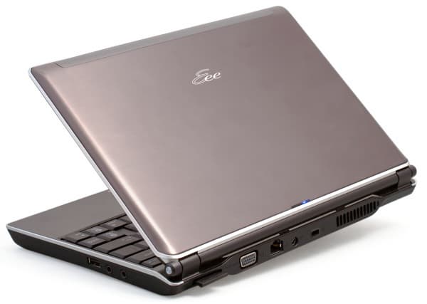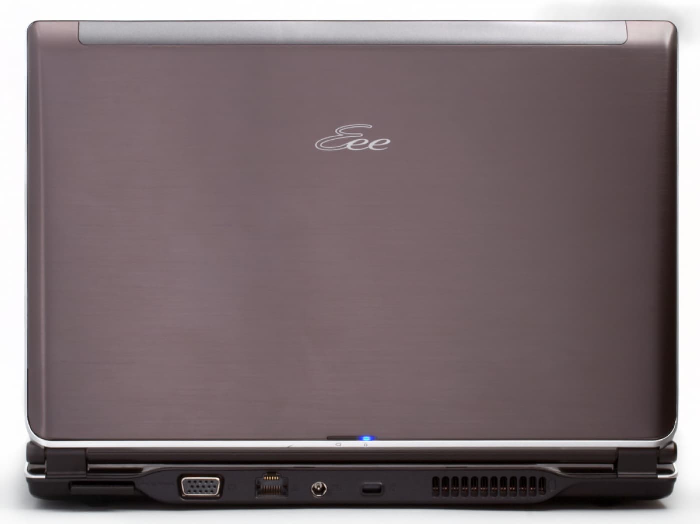 ASUS 1002HA облагородили внешне, приведя в соответствие с общими тенденциями в дизайне ASUS. Корпус с металлической крышкой и фактурой, традиционного для последних ноутбуков от ASUS красивого темного цвета с медным оттенком. Крышка и корпус по краям отделаны серебристыми молдингами, петли крышки – часть цилиндрической вставки в корпус. Матрица открывается по краю ноутбука вверх. Нижняя крышка сделана из дешево выглядящего черного пластика.
