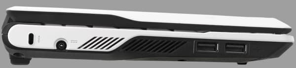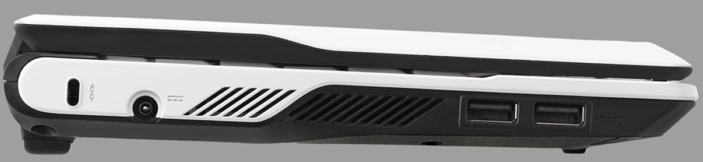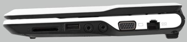 Правая грань у MSI забита под завязку: картовод, порт USB, аудиоразъемы, выход на внешний монитор, разъем для проводной сети. У остальных участников портов на ней гораздо меньше. У ASUS на этой грани находятся еще один порт USB и аудиоразъемы. У Toshiba NB100 – картовод, решетка вентиляции, тоже с косыми ребрами и два порта USB.