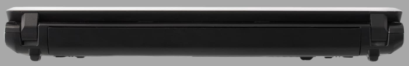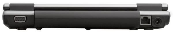 Задняя панель у MSI тоже чистая, как у всех ноутбуков, где матрица откидывается назад, она занята только батареей. У ASUS сзади выход на внешний монитор, проводную сеть, питание и порт замка Кенсингтона. Теоретически все правильно – если нетбук стоит на столе, то все основные (и толстые) кабели будут за ним, а не торчать с боков, это более эстетично и эргономично. Однако на практике есть один недостаток – если вы хотите взять нетбук со стола, то вам нужно прикрыть матрицу, встать, залезть за нее и отцепить все эти кабели. Если кабель сбоку, то отсоединить его гораздо проще. А ведь нетбук – по определению портативная модель, которую берут с собой. У Toshiba с одного бока расположен выход на монитор, с другого – разъем для проводной сети и питания. Здесь действуют те же замечания, что и для ASUS, но в Toshiba разъем питания расположен с краю, т.е. штекер можно воткнуть наощупь сбоку.