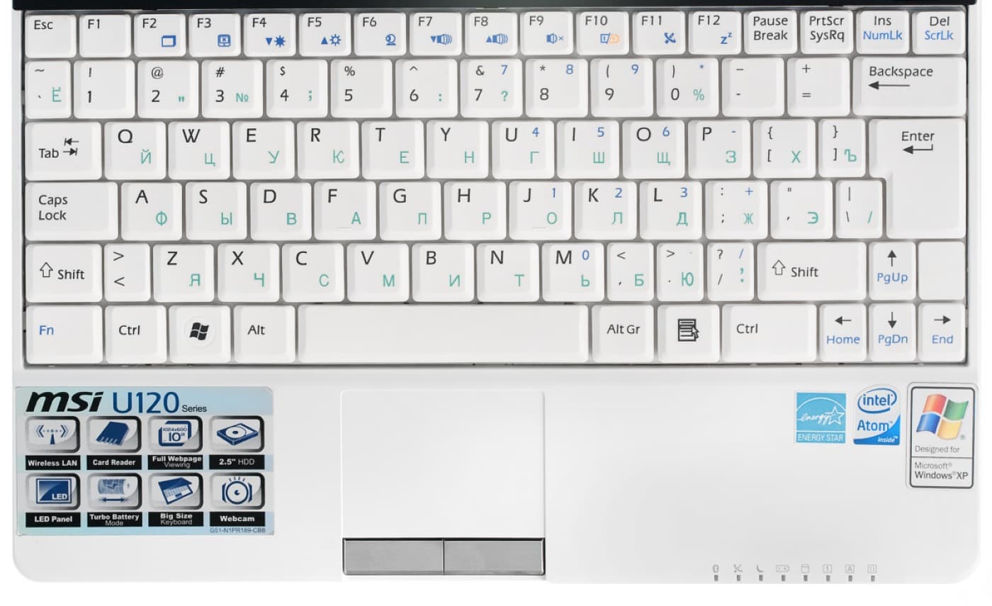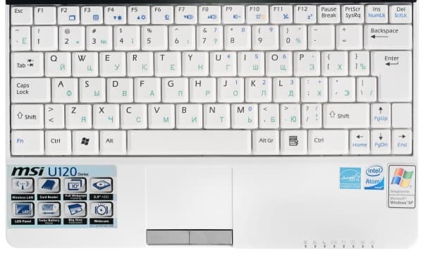 Клавиатура у MSI практически не изменилась. Вообще, количеством загадочных мест она напоминает бермудский треугольник. Например, зачем ужимать полклавиатуры, но при этом делать такой толстый enter? Зачем сокращать левый shift и вставлять бесполезную клавишу с треугольными скобками? Обратите внимание, ужаты клавиши "Б", "Ю" и ".", при печати это почти катастрофа, т.к. точка и запятая – очень часто используемые символы, а вместо них всегда нажимаешь shift. В верхнем ряду ужата клавиша с твердым знаком. Причем, мне кажется, «перекроив» дизайн и немного уменьшив боковые вспомогательные клавиши, разработчики вполне могли бы избежать урезания основных клавиш. Наконец, кнопки курсора ужаты по вертикали, пользоваться ими не всегда удобно. На те же клавиши, в виде сочетания с Fn, повешены клавиши надкурсорного блока. Работать с клавиатурой не очень удобно еще и из-за формы клавиш (они выпуклые) и немного резинового нажатия.