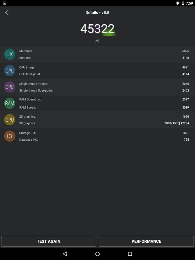 Зато Nokia N1 обходит всех в UX-режиме MobileXPRT, да и в тесте производительности подбирается к лидеру ближе остальных.