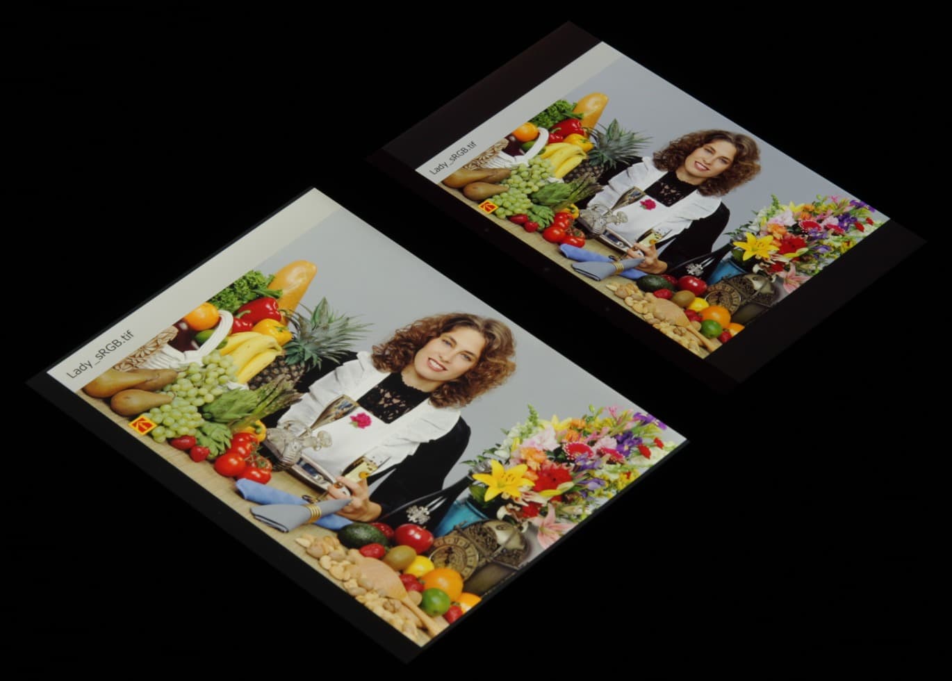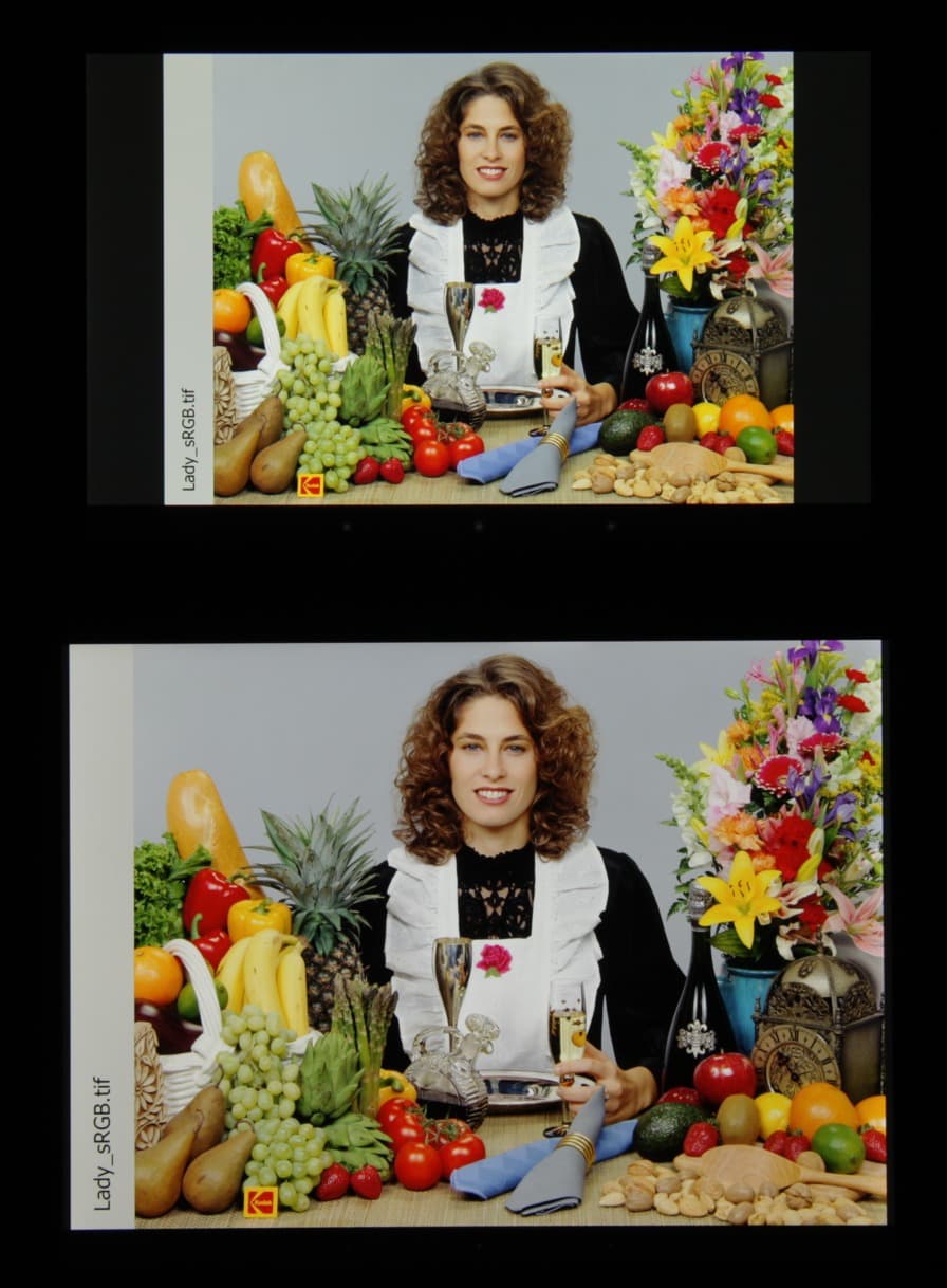 Цветопередача хорошая у обоих экранов, цветовой баланс различается незначительно, цвета насыщенные. И белое поле: