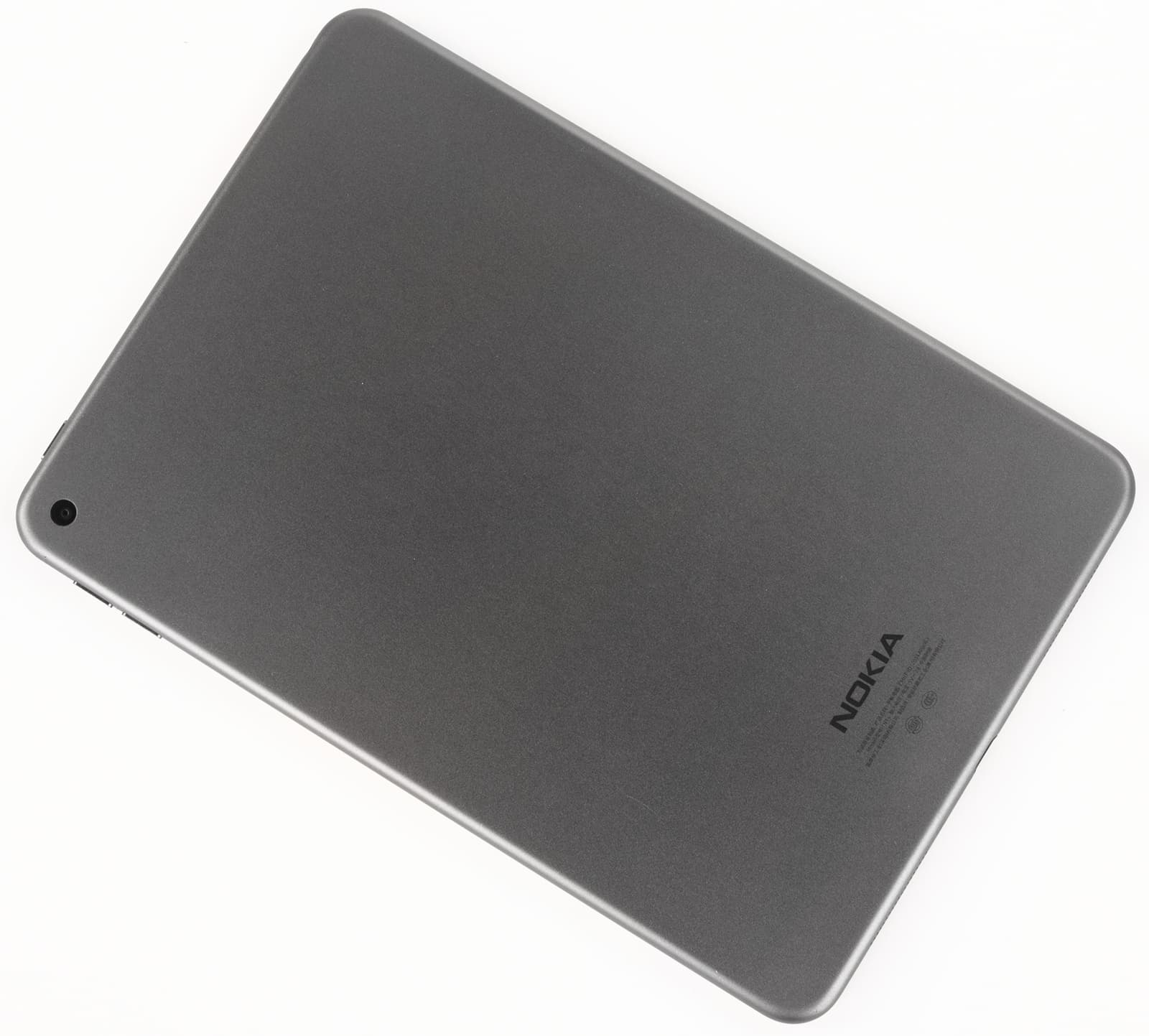 Корпус планшета выполнен из цельного куска алюминия темного серого оттенка (всего есть два цвета: Lava Gray, как у нас, и светлый Natural Aluminium). Тыловая камера совсем чуть-чуть утоплена в корпус, вспышки не предусмотрено.