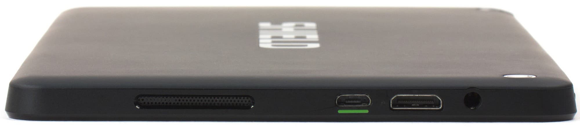 Все разъемы разместились на левой грани. Это 3,5 мм джек для гарнитуры, Mini-HDMI и Micro-USB (с поддержкой OTG). Также здесь мы видим еще один динамик.