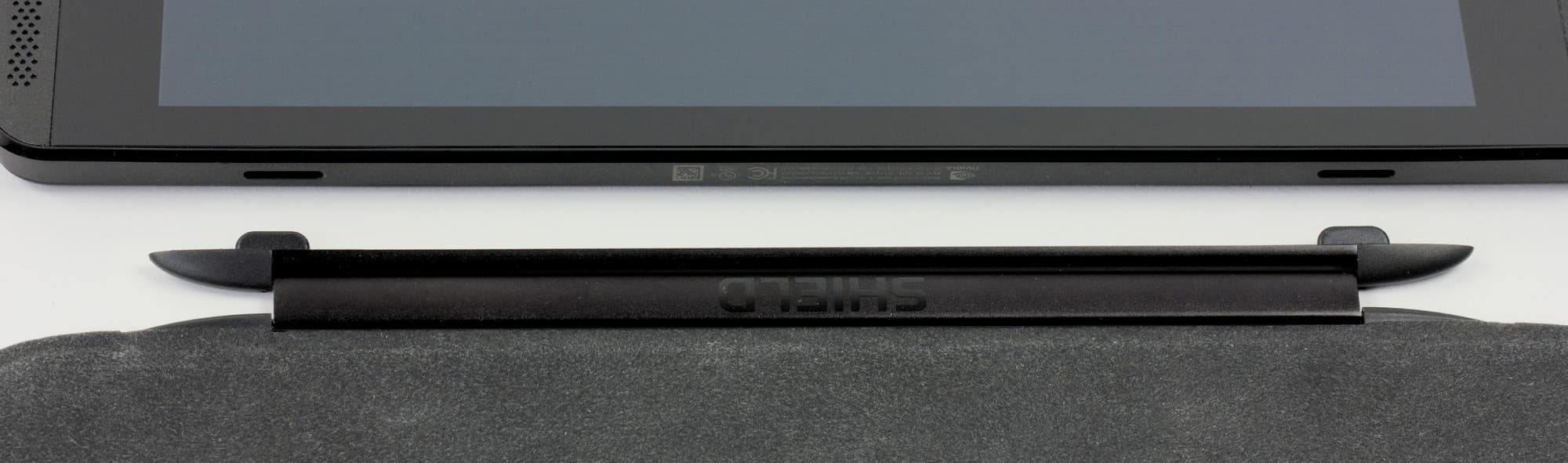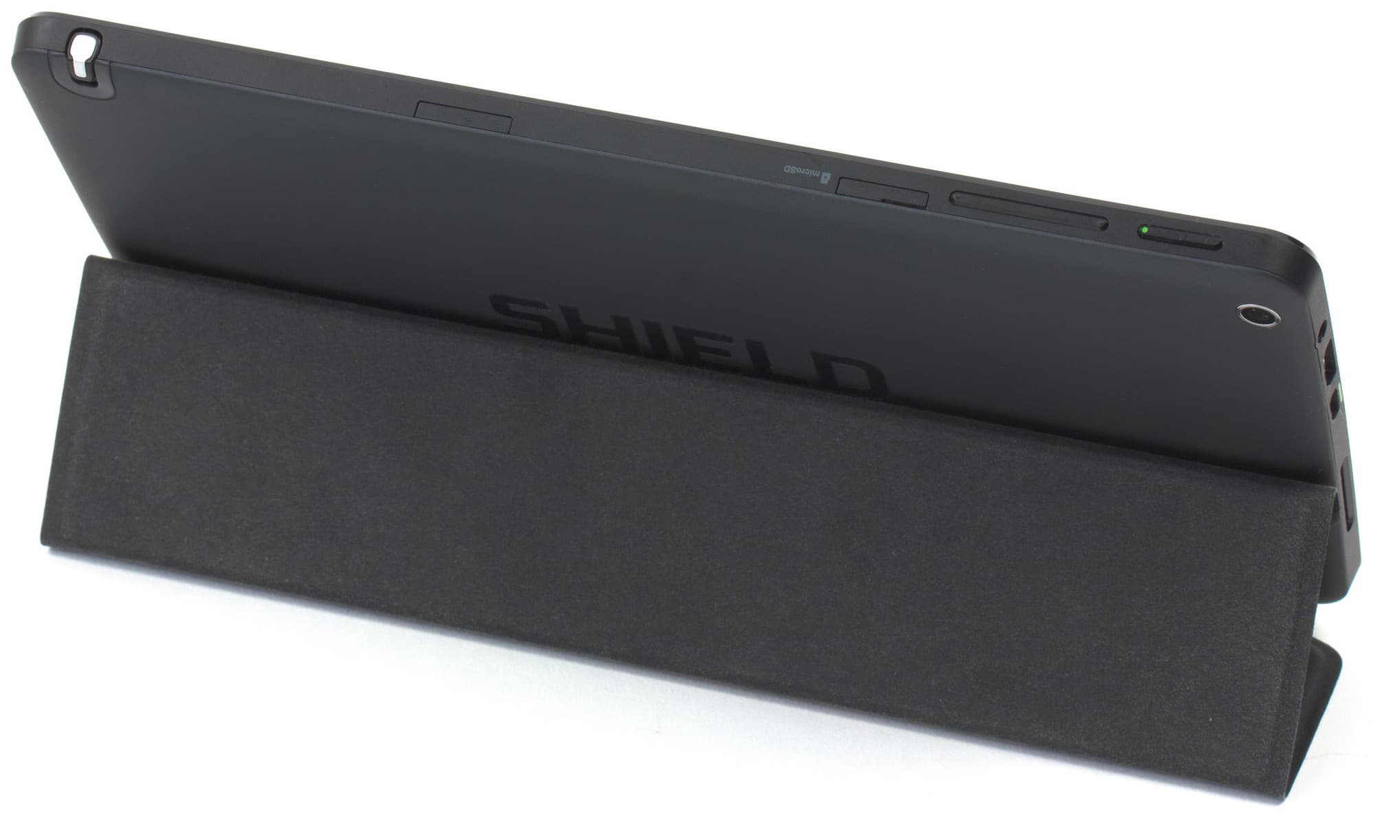 В тоненькой коробочке разместился второй аксессуар к планшету — фронтальный чехол Shield Tablet Cover. Это стандартная обложка, подсоединяемая с помощью магнитных штырьков к нижней грани планшета и защищающая его экран, а также позволяющая установить планшет на столе под разными углами.